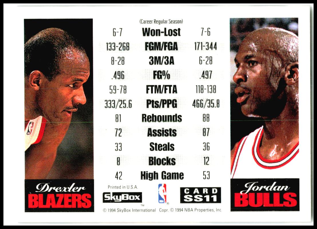 1993-94 SkyBox Premium Showdown Series #SS11 Clyde Drexler / Michael Jordan