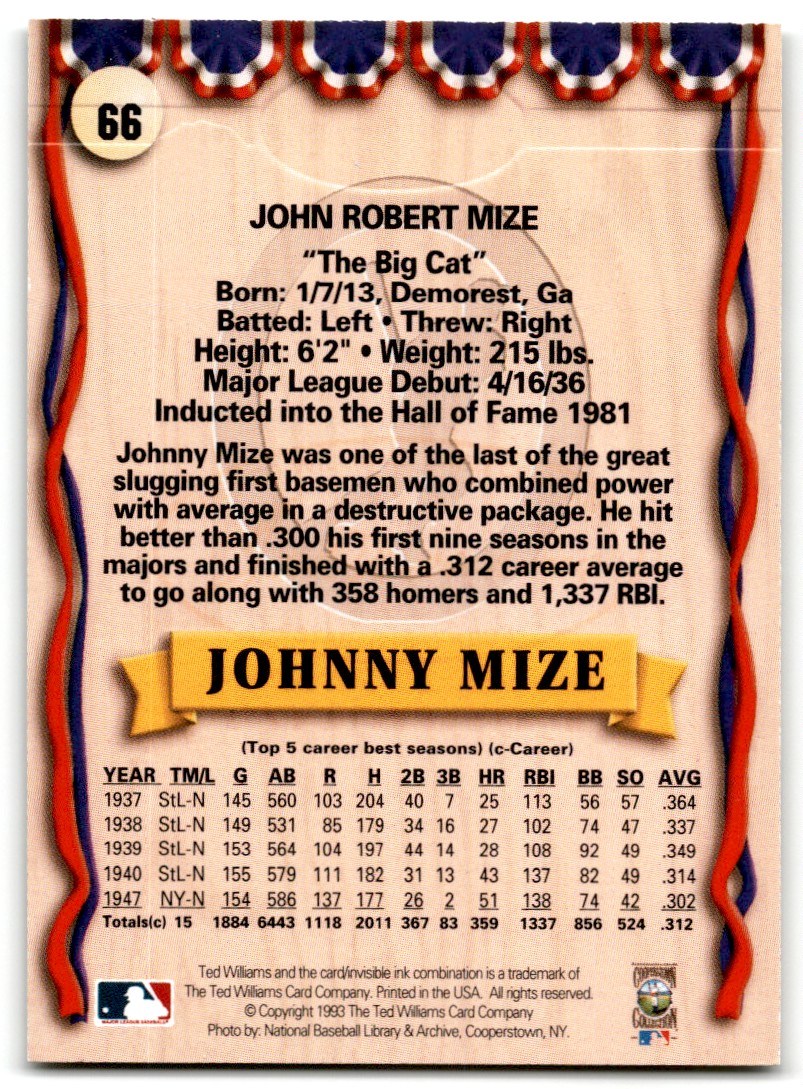 1993 Ted Williams 66 Johnny Mize | ||||||||||||||||