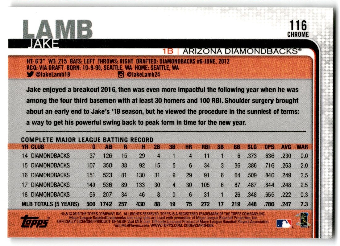 | 2019 Topps Chrome Sepia Refractor 116 Arizona Diamondbacks | ||||||||||||||||