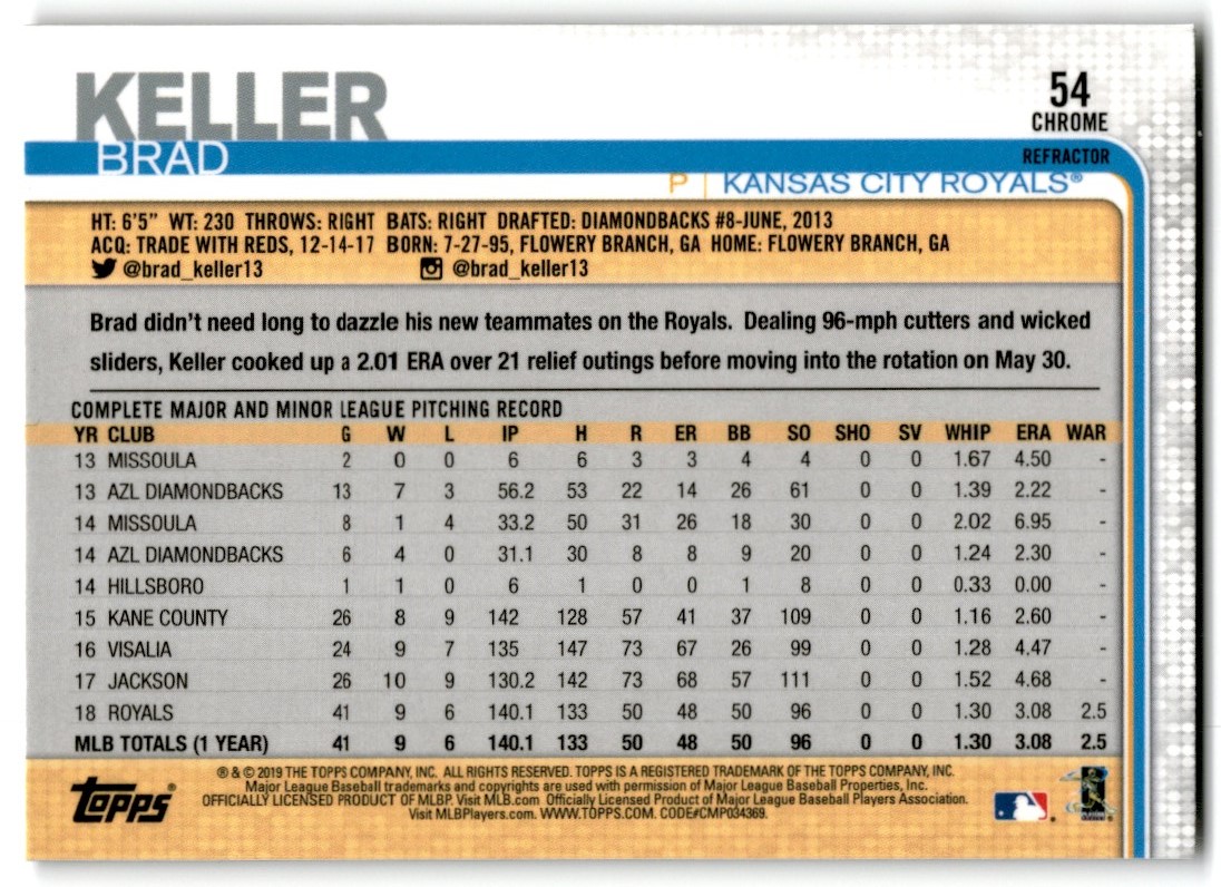 2020 Topps Chrome Sepia Refractor Brad Keller Kansas City Royals #54
