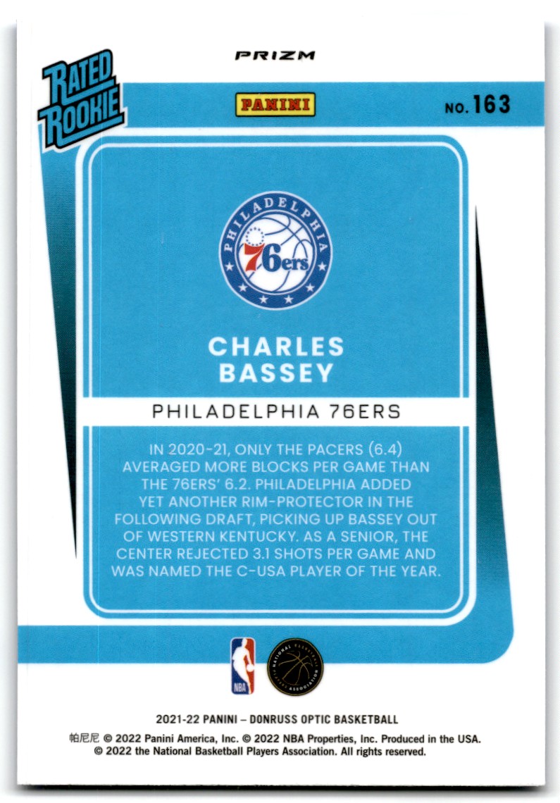 2021-22 Donruss Optic Rated Rookie Blue Velocity Prizm 163 Charles Bassey | ||||||||||||||||||||