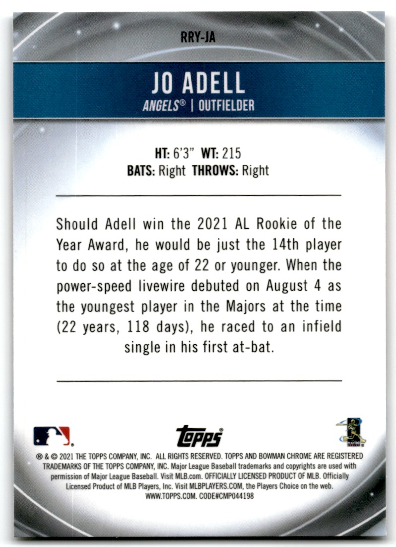2021 Bowman Chrome Rookie of the Year Favorites RRY-JA Jo Adell | ||||||||||||||||