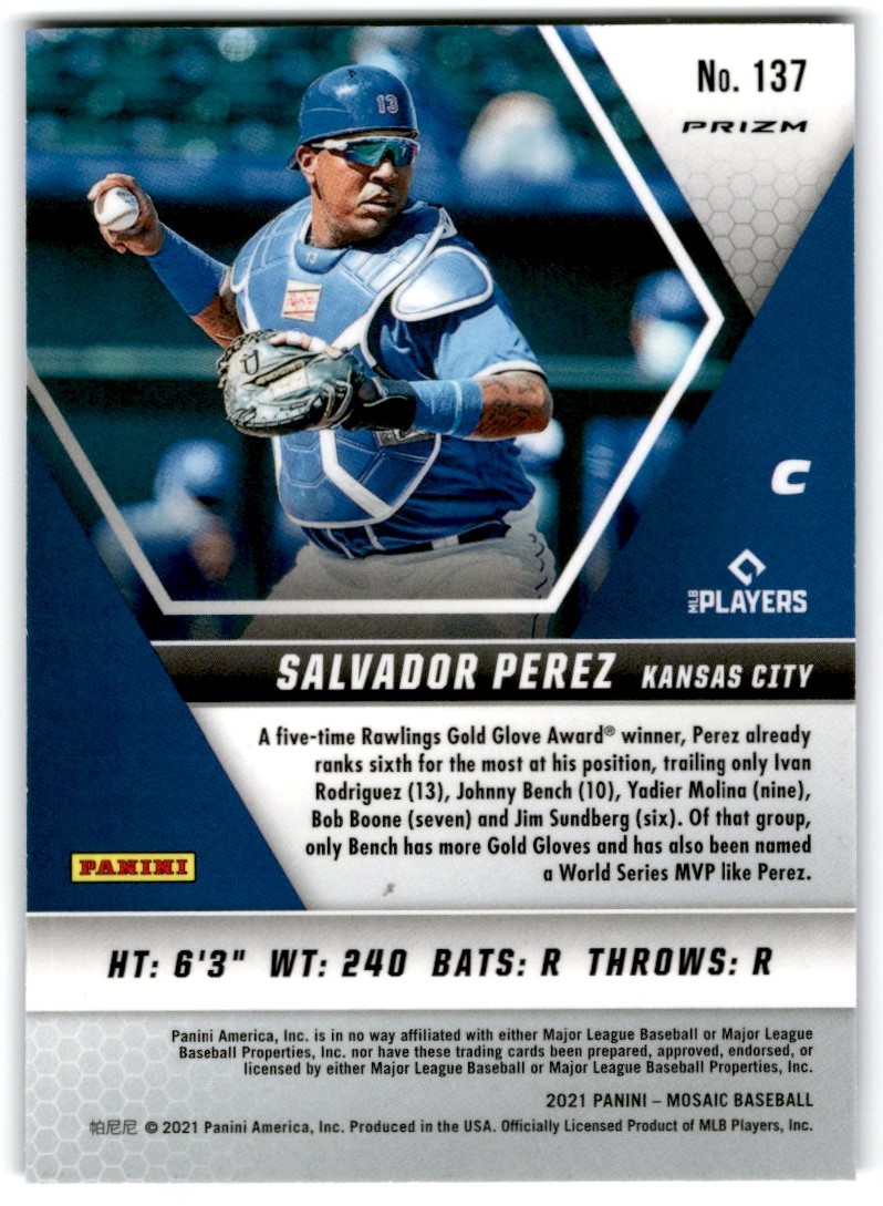 2021 Panini Mosaic Blue Reactive Prizm 137 Salvador Perez | ||||||||||||||||