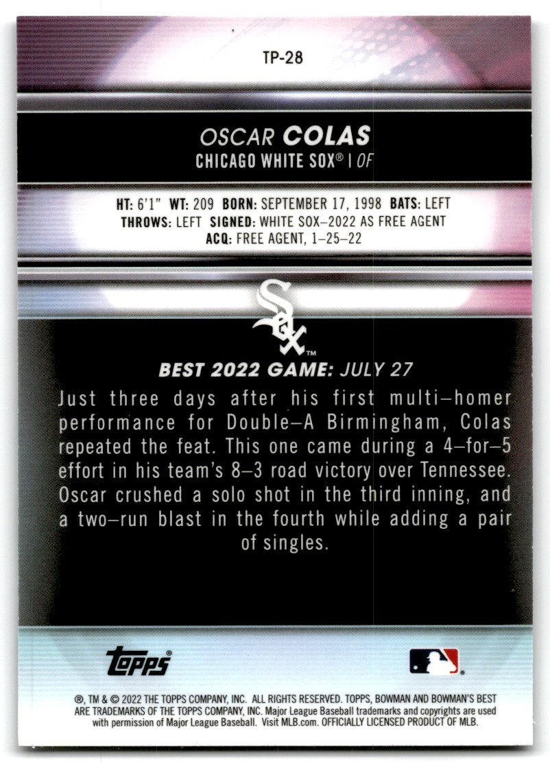 2022 Bowman Best Top Prospects TP-28 Oscar Colas | ||||||||||||||||
