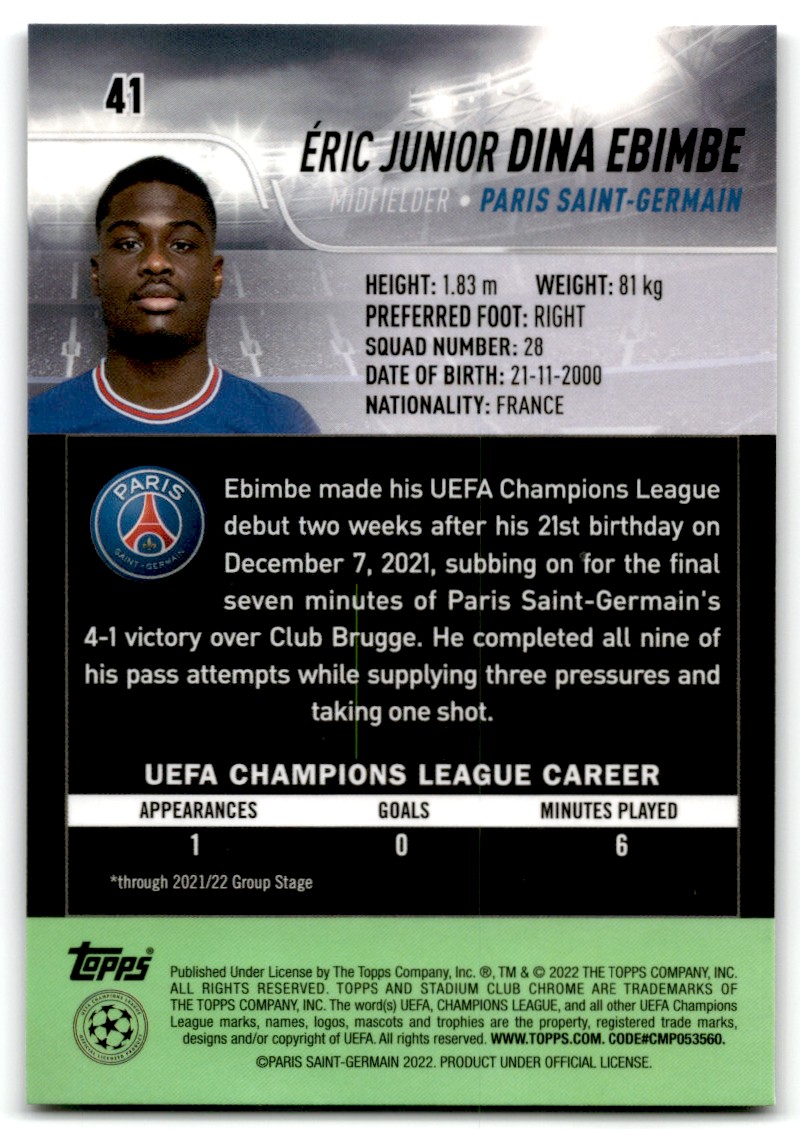 2022 Stadium Club Chrome Dina Ebimbe Paris Saint-Germain #41