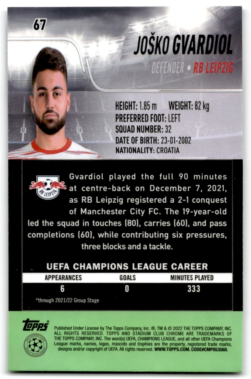 2022 Stadium Club Chrome Josko Gvardiol RB Leipzig #67