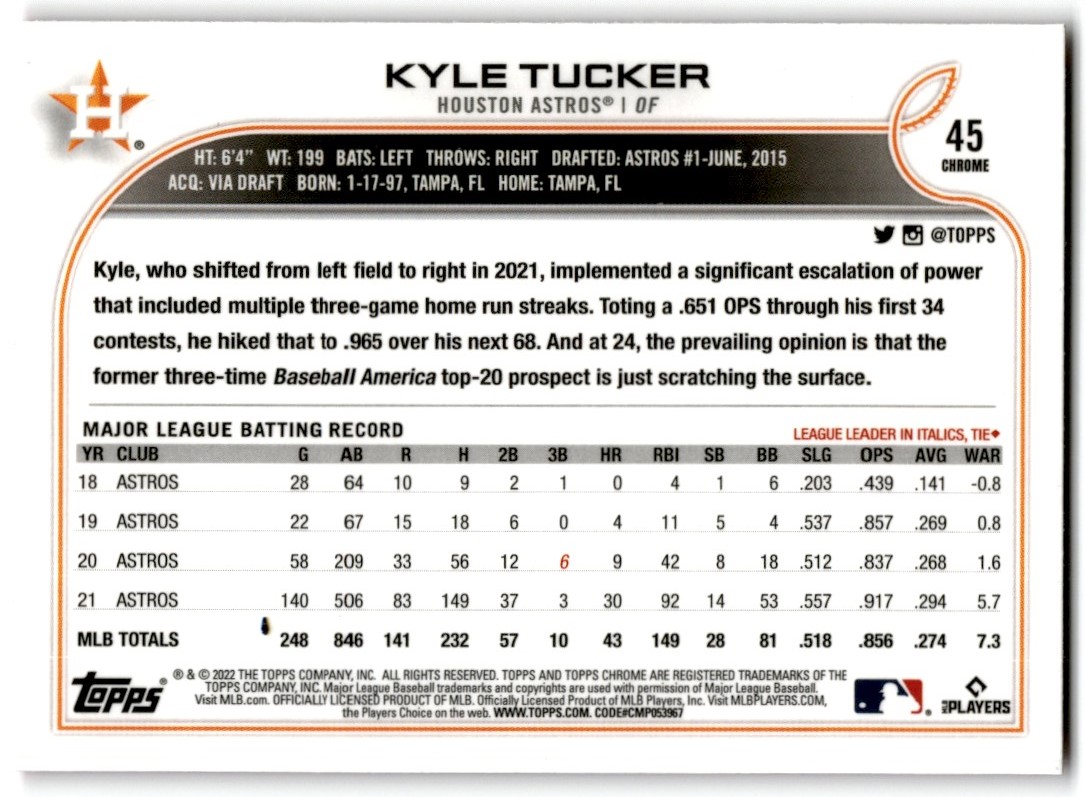 | 2022 Topps Chrome Pink 45 Kyle Tucker | ||||||||||||||||