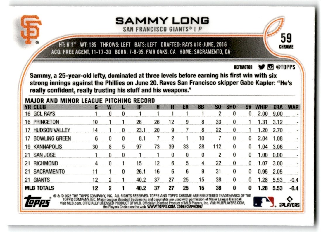 2022 Topps Chrome Refractor 59 Sammy Long | ||||||||||||||||||||