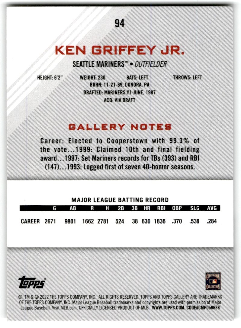 2022 Topps Gallery 94 Ken Griffey Jr. | ||||||||||||||||||||