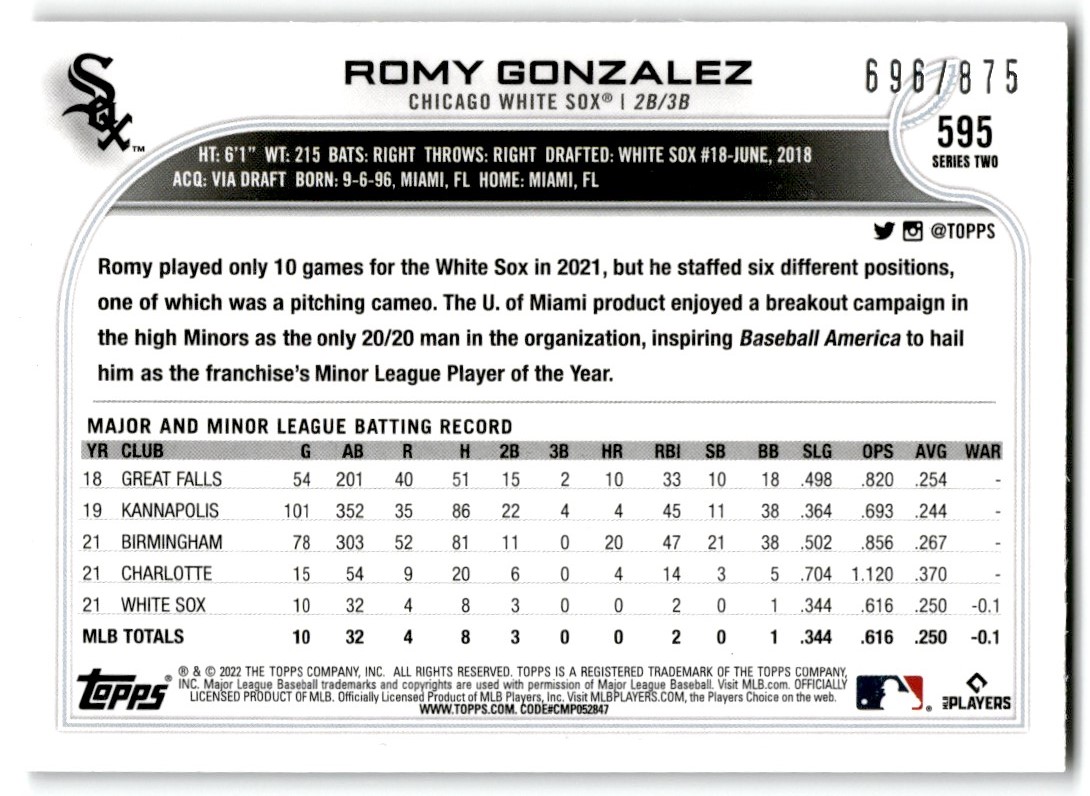 2022 Topps Retail Foilboard 696/875 595 Romy Gonzalez | ||||||||||||||||||||