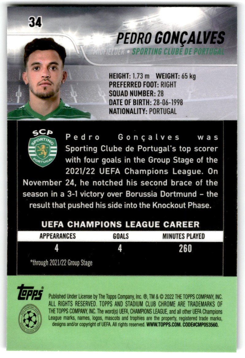2022 Topps Stadium Club Chrome UCL 34 Pedro Gonçalves | ||||||||||||||||||