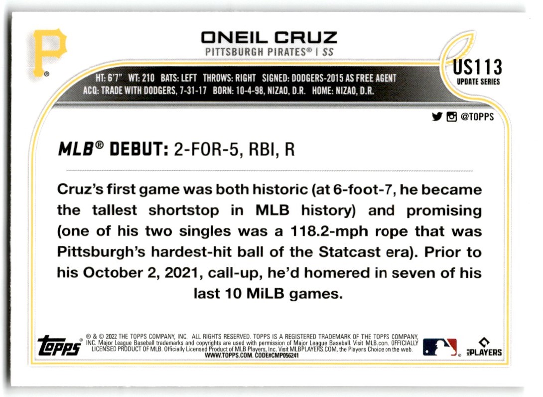 | 2022 Topps Update US113 Oneil Cruz | ||||||||||||||||