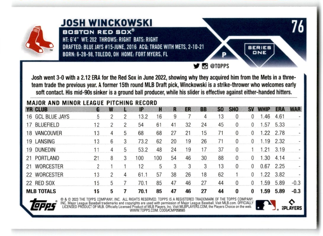 2023 Topps 76 Josh Winckowski | ||||||||||||||||||