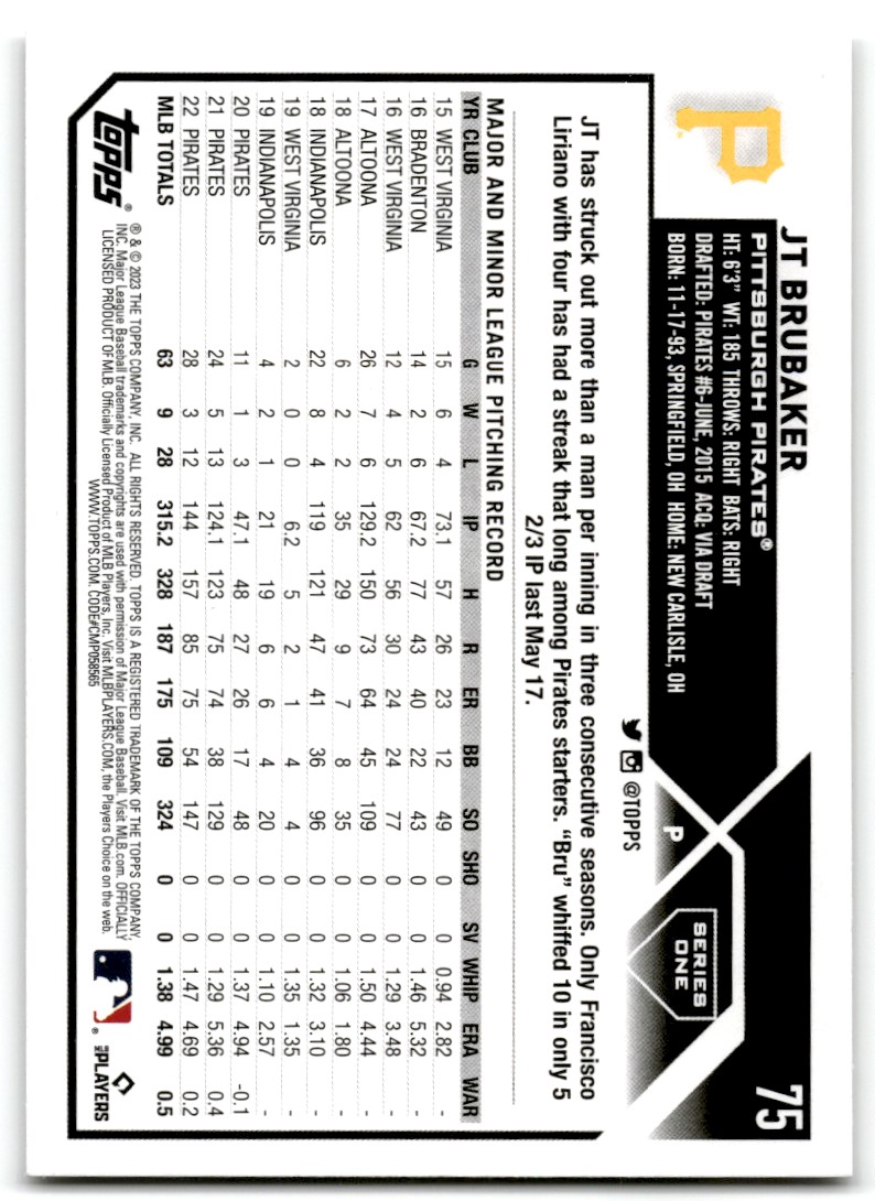 2023 Topps 75 JT Brubaker | ||||||||||||||||